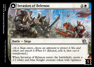 So why does the defending player care about the battle? It's not actively hurting nor benefitting them. The backside of all the battles are decent, but not overpowering. In fact, the fact that their opponent is attacking the battle is arguably a good thing. As far as the defender is concerned, each Siege reads "Opponent gets an overcosted effect. You gain life equal to the number of defense counters on the battle plus any excess damage." The opponent gets another spell after giving you that life, but none of those spells are crippling. There are few if any that would be good enough on their own by my reckoning.