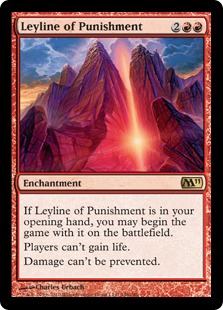 Leyline of Punishment is a format-changing card. much the same way that its Shadowmoor counterpart Everlasting Torment was crucial in beating Burrenton Forge-Tender, Leyline of Punishment gives red decks a legitimate shot at beating Kor Firewalker. Since it's very specific in its role, and likely only a sideboard card when needed, its price won't go nuts. Regardless, mono red decks have a lot of tools available right now and Leyline of Punishment should be a sideboard stable. It's barely above a dollar right now, and because if this, it gets a Buy rating. Expect it to see $5 if mono red becomes a player in the format. Given its suite of tools right now, the odds seem very good.