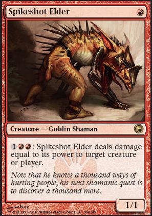 A Kor-os deck has been brewing in my brain for a long time, and Spikeshot Elder definitely makes the cut as a four-of. There are a lot of combinations that make this new Goblin very deadly. As with almost every card in Scars of Mirrodin, the synergy with Stoneforge Mystic is undeniable, but let's push the card a bit further.