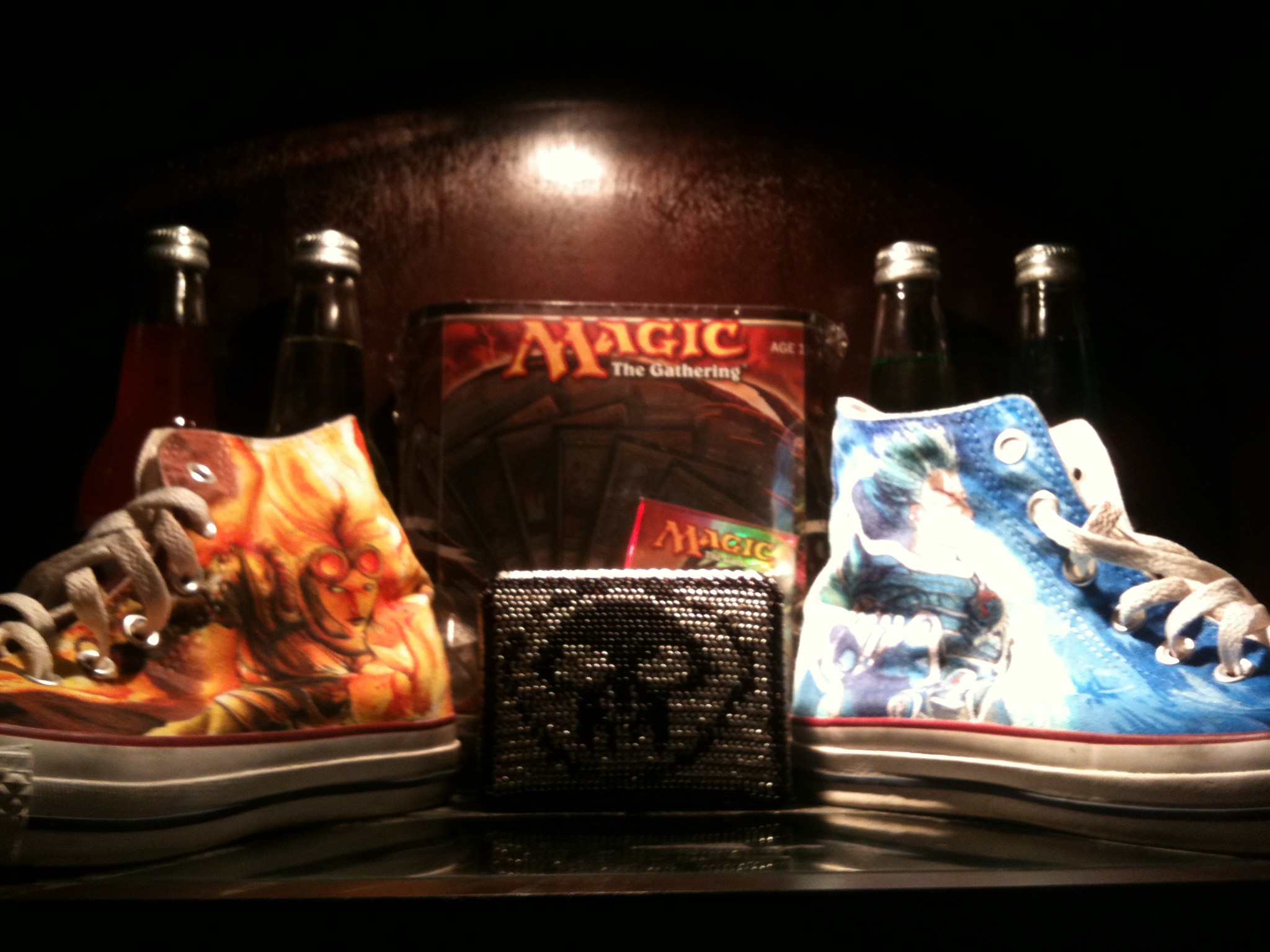 When I asked Rachel to make it for me over 6 months ago I didn’t realize how much work it was going to be. She starts with nothing but wire, pliers and metal sheers and makes magic (no pun intended). She can be found at most of the big Magic events in the northwest quietly hand crafting various concoctions from bracelets to life counters to deck boxes. I’m really happy with how it came out so I’ll show a few more pics