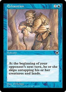 An alt-art of the Saga favorite, the Portal Exhaustion goes for a little under a buck on Star City, two bucks on Channel Fireball, and, uh, one sold on eBay for like $7.50 for some reason.