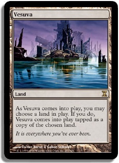 Eldrazi Post made use of the already extremely expensive Candleabra of Tawnos to untap the cloudpost and glimmerpost lands. The two cards with money potential here are the FNM promotional cloudpost, and Vesuva, which brings the total "post" land potential to 12. Easy to see just how quickly you could power out an Eldrazi at that rate.