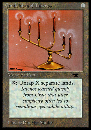 Hopefully you all got the e-mail Doug sent out saying to try and get Candelabra of Tawnos and Time Spiral. The prices on them have risen with demand, and the numbers available are scarce.