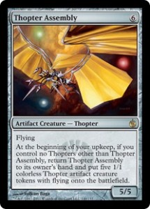 This is a neat trick within the rules that would allow you to get your Thopter Assembly's tokens. If you Snuck the Thopter Assembly into play during your opponent's end step, it would stick around during the beginning of your upkeep and trigger as normal.
