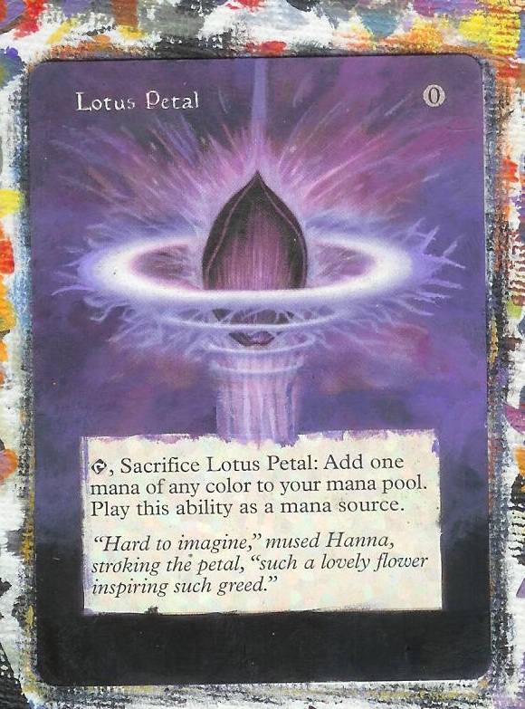 have a very satisfactory borderless Lotus Petal, and this would be a fair place to end the project. You are of course welcome to stop here if you like, but this card gives us so much more to work with that I won't allow myself to stop here. I will say that the “Step-by-Step” portion of the article is done. So consider the following the “advanced” portion