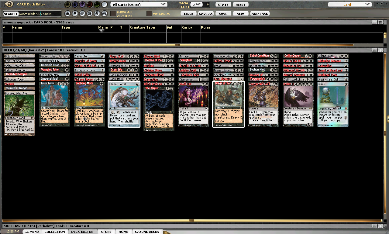 - Doom Blade: Funnily enough it doesnāt make the cut. The deck has so much great removal that can attack from all different angles that this card becomes too simple. Sorry DBG. Now excuse me while I go into hiding.