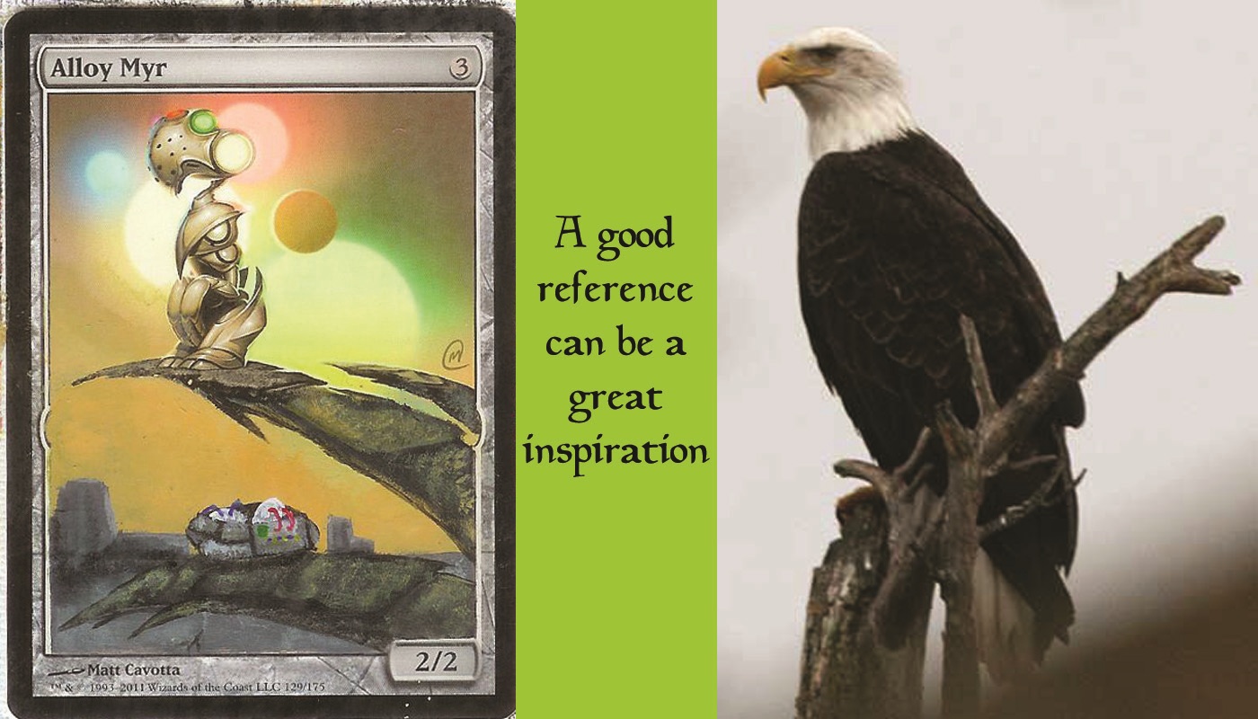 Perhaps I should have mentioned this in my first article, but you should be collecting things. One way to help keep fresh ideas pouring into my head is by keeping a binder full of interesting pictures. Anytime you look in a magazine and find a picture you like, cut it out (not in the waiting room) and file it in this binder. Landscapes, portraits and animals are all great for reference and inspiration. Old calendars are great for that sort of thing. Also, you may consider keeping a small box full of interesting objects as well, like old bottle caps for interestingly shaped rocks and such. Having a place to look for inspiration when you've hit a block can be enormously helpful in moving the process along.