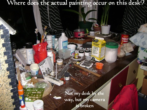 I would love to say that keeping a clean workplace is a huge key to success, but it isn’t and my workplace is quite often a mess. Properly stated, a comfortable workspace is a huge key to success. Painting is a hobby that requires some space, so you want to make sure you have enough space to work comfortably. Constantly having to shift things aside to make room for yourself can be a huge distraction. Things like this, that draw your attention away from your painting also draws your mind away from focusing on the task at hand and painting to the best of your ability. The better your painting, the more money it is worth.