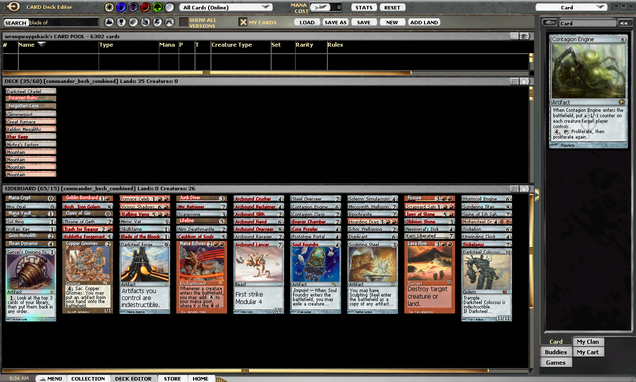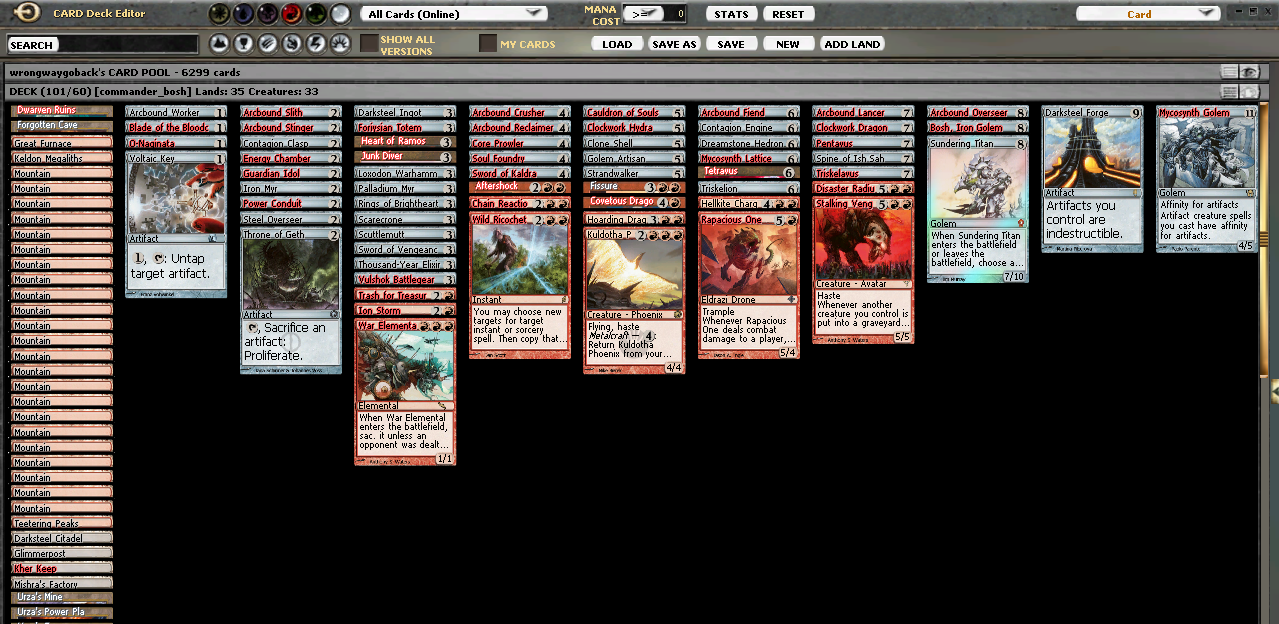 Today I'll be tuning a deck set to me by Panahinuva. Panahinuva's deck uses Bosh, Iron Golem as it's commander, and is designed for multiplayer play.