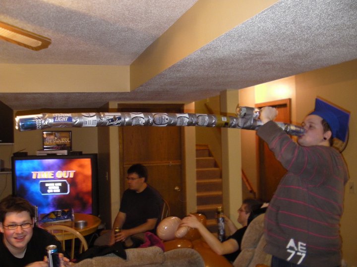 If you've never heard of it, it's a drinking game involving quests and large staffs made of beer cans. Every beer you finish is taped to the bottom of your new beer. As the night progresses, your staff can be used to help you ward off imaginary demons. Or stand.