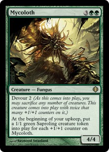 Mycoloth - The deck has enough little dorks in it that an unanswered Big Mike will end things in a turn. Again, this prompts Zoo to say "Path or lose?" You'll often have two or three little guys, and making a swarm of 1/1s out of them is just fine.