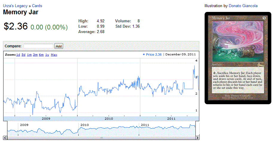 I would argue that speculating in Dark Depths carried lower risk of poor returns simply because it was always legal. If Memory Jar never saw Legacy play again it would not surprise me. But an uncounterable 20/20 indestructible creature was bound to hit tournament tables eventually!