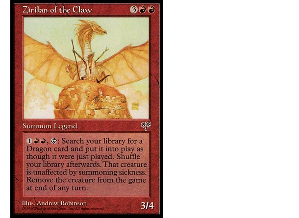 Great! Now all I have to do is figure out what sort of deck wants this type of sudden damage. My first thought was aggro, but not only is that sort of pressure hard to maintain in multiplayer, it doesn't make very good use of Dragons you draw or Zirilan's tutoring capabilities.