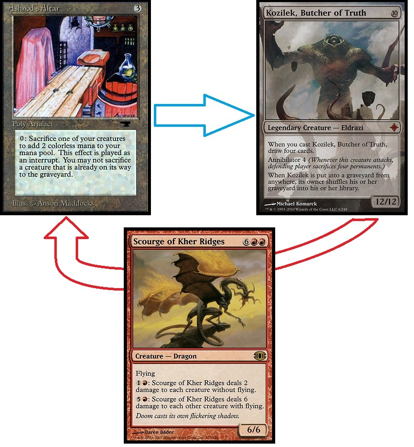 Ultimately we need to get Dragons back into our library, but Mirror of Fate hardly seems like the solution. The easiest zone for Red (or rather, colorless) to get cards into the library from is the graveyard. And, luckily, it's not too hard to get creatures on the battlefield into the 'yard either.