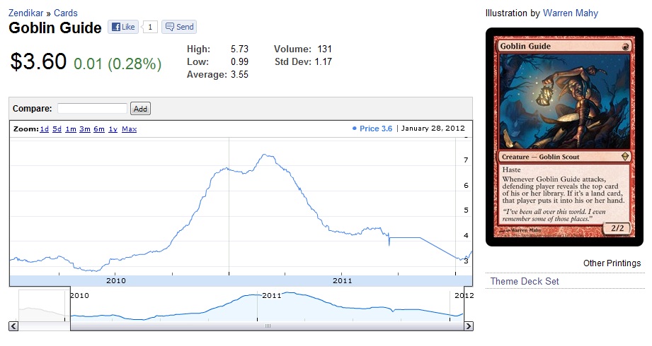 Oh, thanks for pointing that out! I didn't realize Goblin Guide was the Grand Prix Promo (seems pretty underwhelming after getting Umezawa's Jitte, no?). That may keep the value of the guy in check, but I don't see much downside from here.