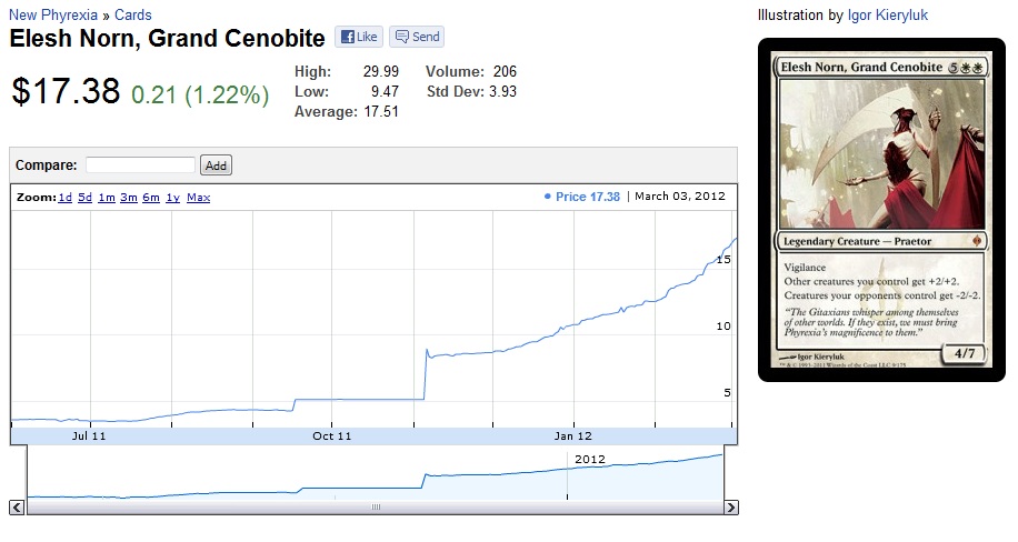Recently, I've been trying to limit the number of high-dollar cards in any given deck that I post. I think I've been doing a pretty reasonable job, and I'd like to keep the trend going. Just because you can throw a pile of expensive staples into a deck doesn't meant that you should; putting a budgetary restriction on decks forces you to be a little more creative and emphasize powerful interactions over individually powerful cards.