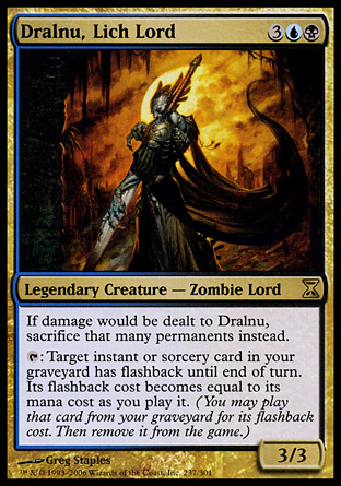 The biggest issue I foresee for this deck is finding a suitable win condition. Most Dralnu decks play every available Time Warp, which is certainly powerful, but I just don't enjoy those effects in multiplayer formats. Cards that effectively read "Each other player skips their turn" will not make you friends and instead get you hated off of a table.