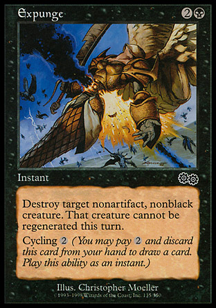 The two most exciting cards out of these are the ones that play well with Dralnu-- Life's Finale and Expunge. Expunge is just straight up value with Dralnu as your general. It cycles to fix your draws early and flashes back as a removal spell when you need one. What more could you want?