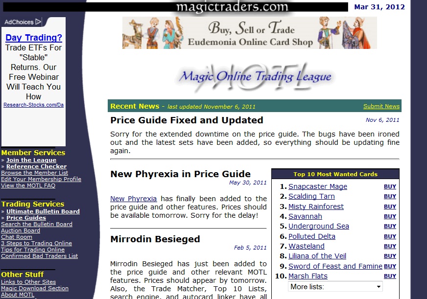 When it comes to buying, MOTL is often towards the bottom of my priority list. Sifting through endless lists of overpriced cards is not the most fruitful task. Selling, on the other hand, is ideal with this online site.