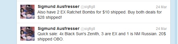 Sigmund first started playing Magic when Visions was the newest set, back in 1997. Things were simpler back then. After playing casual Magic for about ten years, he tried his hand at competitive play. It took about two years before Sigmund starting taking down drafts. Since then, he moved his focus towards Legacy and MTG finance. Now that he's married and works full-time, Sigmund enjoys the game by reading up on trends and using this knowledge in buying/selling cards.
