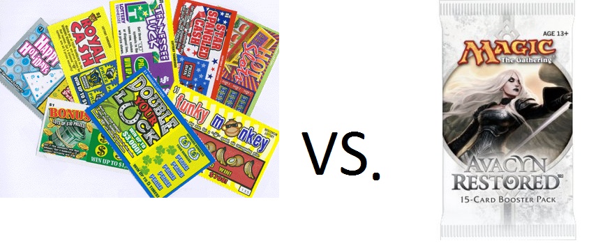 I have commented before how opening Magic: The Gathering packs have become analogous to scratch-off lottery tickets. The introduction of the Mythic Rare and Planeswalkers has compounded this result. While the inconsistent payouts to purchasing packs may be rewarding and even addicting to some, it has really dissuaded others from ripping open random sealed product.