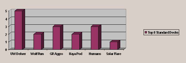 Remember you want to select a deck that is generally powerful and consistent, because your goal at a PTQ is not merely to top-eight, but to win the entire event. Also make sure to factor in your familiarity with viable decks. If you have a lot of experience with Solar Flare, for example, it might be the best choice even though it has lower results so far.