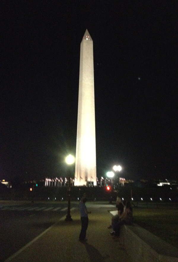 We continued our journey to the other side of the building where we could see the Washington Monument, which shone brightly in the distance. After our friends on the security force showed up to keep an eye on us, we decided to head over and take a look up close.