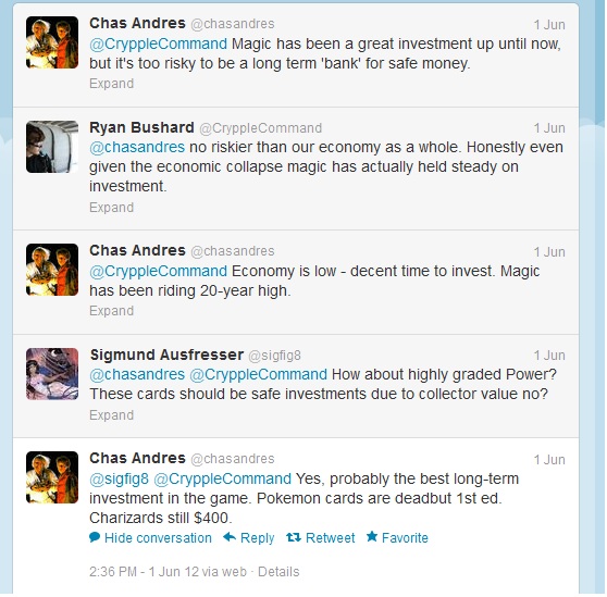 This past week, an interesting conversation on Twitter caught my eye. Chas Andres (@chasandres) was participating in the discussion, and since he’s a highly regarded finance writer in the realm of MTG, I paid close attention.
