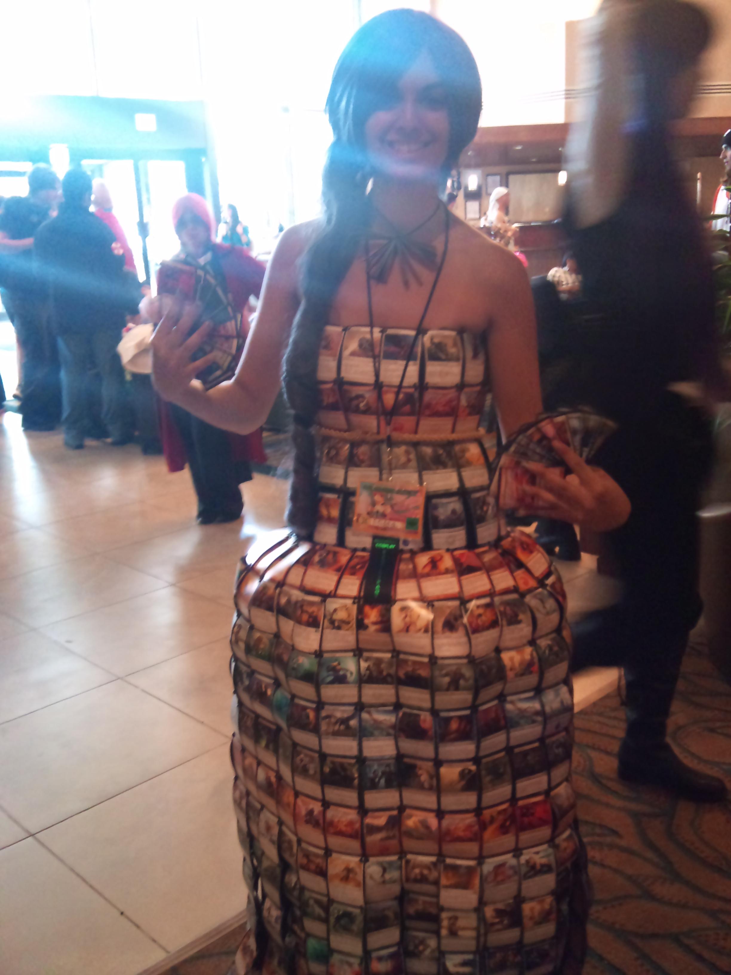 Redditor RubyDragon79 brings us this snapshot he took of a very colorful dress he encountered at a convention. Anyone else think it would be hilarious to loudly announce that Joss Whedon was signing autographs just to watch her try and run in that thing?