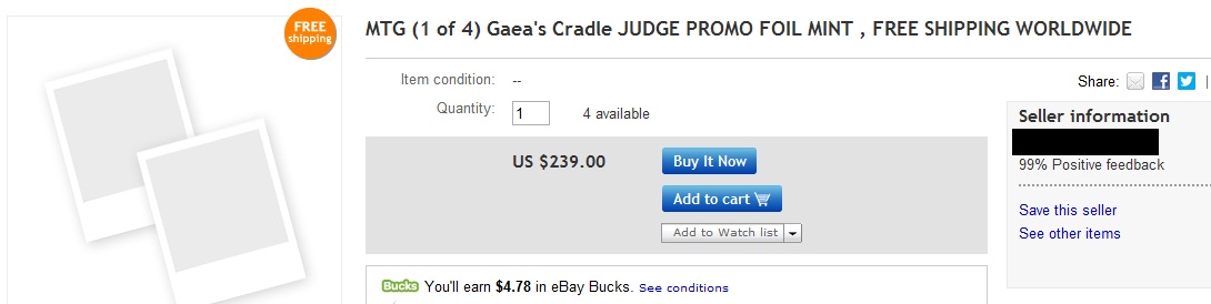 Without looking, what is the value of a Promo Foil Gaeas Cradle? If you have no clue, I bet I can influence your guess. Let’s say I showed you the only active eBay listing for this card at the time of this article: