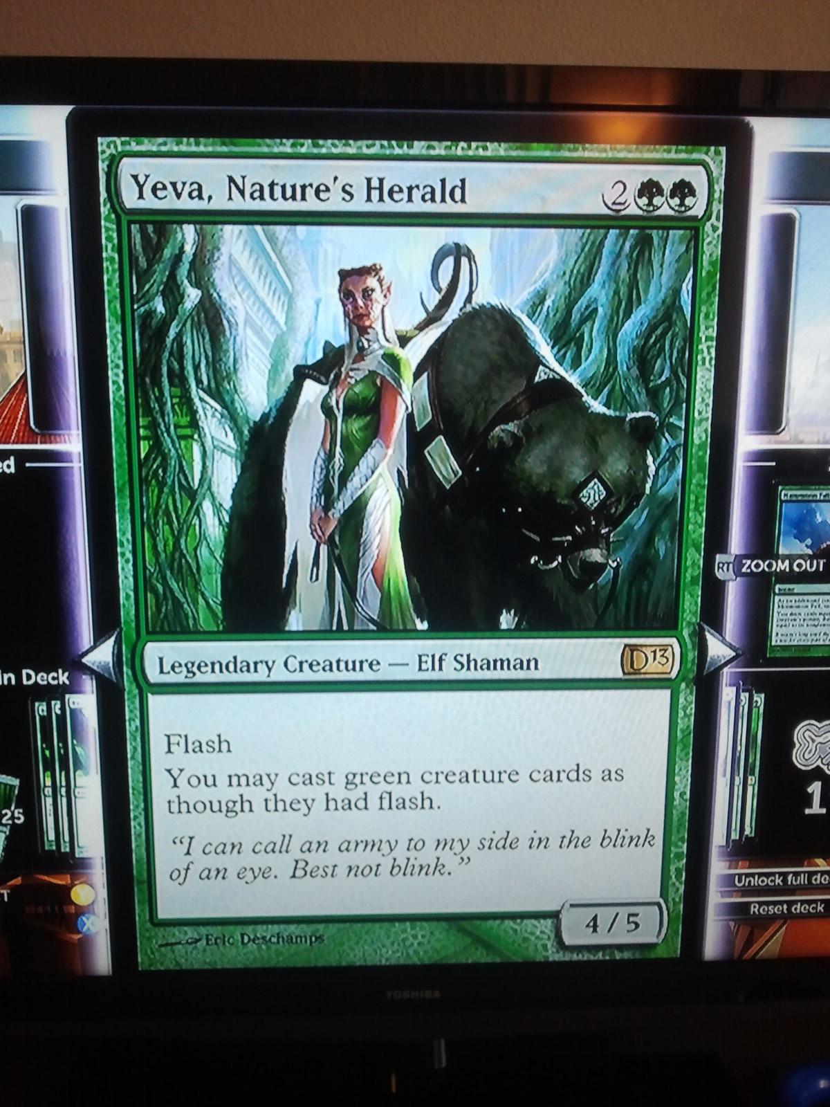 Keen-eyed Redditor tellerfan caught another DotP error. It appears the missing toughness from the Phoenix ended up getting tacked on to a creature that probably didn't need the help. I already had to suspend my disbelief to accept the premise of a scantily-clad elf, who likely weighs 75 pounds when soaking wet, surviving a lightning bolt or killing four people in one attack-- let's not make it tougher by letting her survive a Char to the dome.