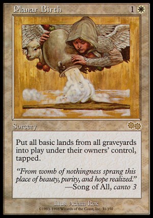 Alternately, you can build a recursion engine that aims to break cards like Planar Birth and Second Sunrise by sacrificing lands for value and rebuying them. After producing a critical mass of card draw and mana, you have merely to decide how to abuse it!