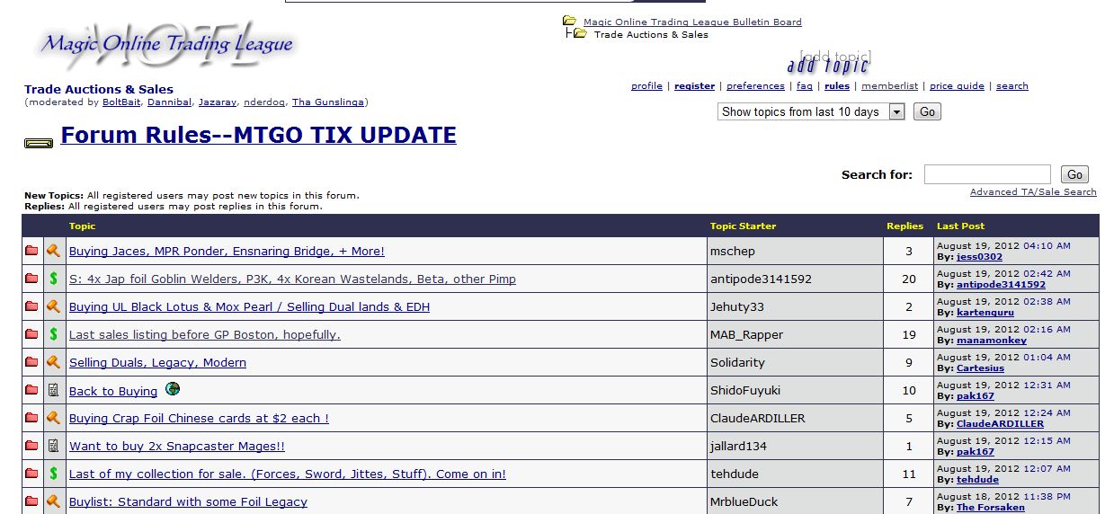So check it out – you can even view these threads without having an account, so there is no risk to you for visiting the site. And since there’s no FNM’s involved and no need to commit hours at a time to the site, I’m able to actively buy, sell and trade Magic Cards without ever stepping foot outside my door.