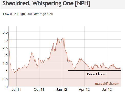 Also, although not mentioned explicitly in the article, the Scars of Mirrodin planeswalkers are all approaching attractive prices. Not sure if they have bottomed, but they are getting close I feel.
