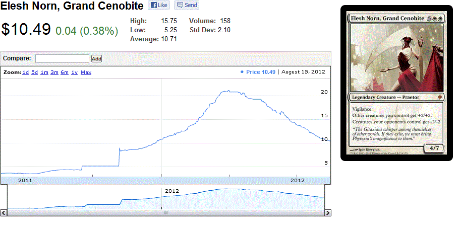 This guy has ranged as high as $40 and as low as $8, which is about where he sits today. He has obviously defined big green decks in Standard for the last two years. Heās also been a Commander staple since the moment he was printed and will forever be included in every green deck hereafter.