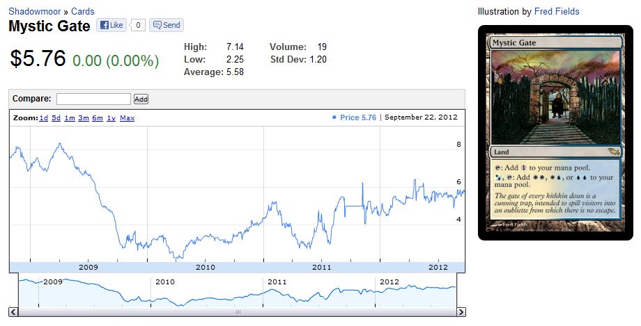 Since Mystic Gate rotated back in 2009, the card has doubled in value. Filterlands see play in Modern and EDH, and so their value has gradually increased much like many Eternal cards do. I see no reason why the Fastlands wouldn’t follow the same pattern. I bought a set of 20 of these just last week at under $3/land and I hope to acquire even more through trades once Return to Ravnica is released.