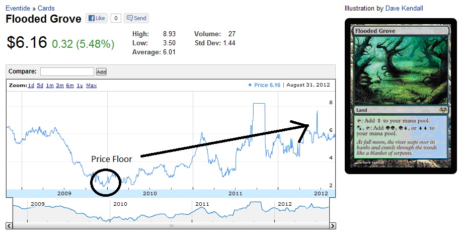 Cards don’t increase in price overnight (unless they are unbanned from constructed play). There is often a period of a few days to a week where the card price slowly rises before making what appears to be a significant jump.