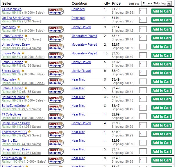 So you navigate to TCG Player where many vendors sell their cards, and you browse the list of retailers selling Fulminator Mage.
