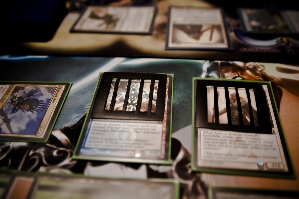 Redditor Gravegill was feeling creative so he used what I imagine are black ultrapro sleeves to fashion some prison bars to represent detained creatures visually.