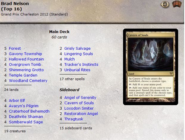 Although slightly more on the speculative side, Somberwald Sage is another creature worth considering. This mana-producing creature has already proven relevant in Standard with Brad Nelson’s G/B/W ramp / [cardUnburial Rites[/card] deck.