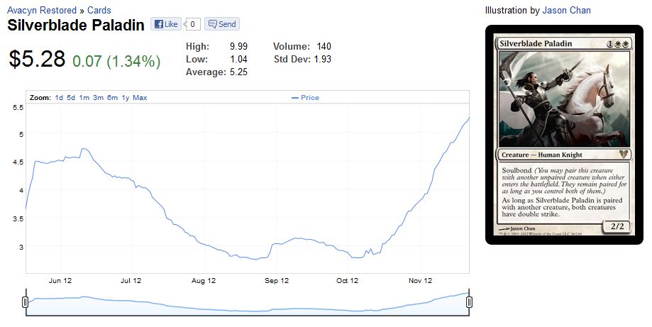 Some players anticipate Silverblade Paladin to be a good fit with a Boros deck (chart from blacklotusproject.com).