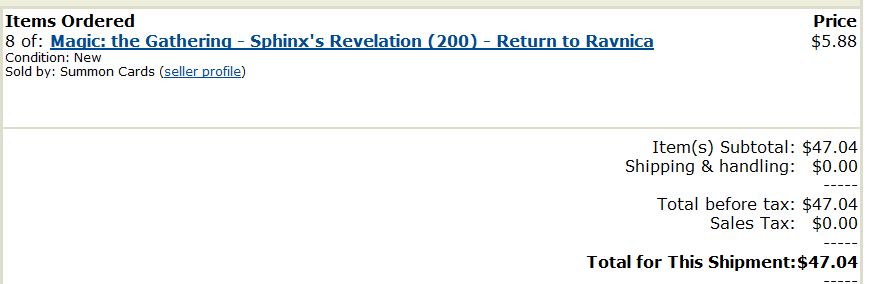 This card is very metagame-dependent. Now that U/W control strategies are thriving in Standard, Sphinxs Revelation is well positioned. But once Gatecrash is released, that could easily change. Rather than hope the metagame remains constant, it seems like a safer bet to expect change. With this assessment in mind, I decided to sell. Four copies sold on eBay for $41.99 and the rest were traded / sold to a local dealer to $8.