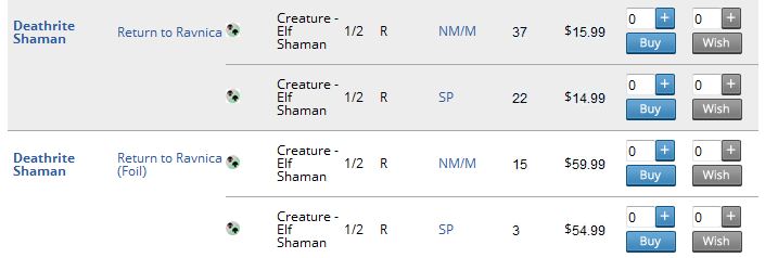 I have two words for you here: Deathrite Shaman – played significantly in Modern and Legacy, foil versions of the Elf Shaman have skyrocketed much to my dismay.