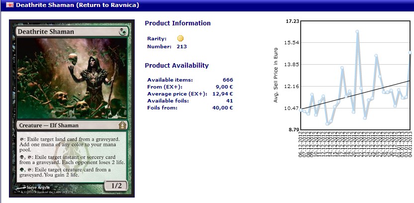 - http://ark42.com/mtg/pricehistory.php?s=Return+to+Ravnica&c=Deathrite+Shaman&d=365