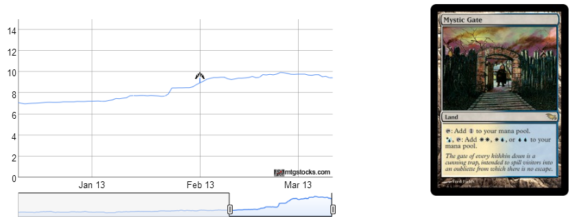 These decks also run Mystic Gate. These are up to $10 now, but we could see more increase. If you have these I would hold them for a bit. With control decks on the rise they could hit $12-14.