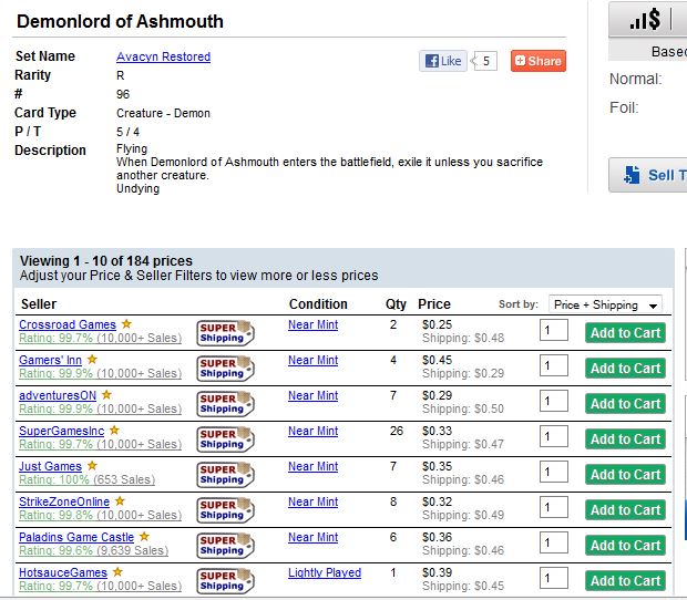 Jonathan, thanks for the comment and insightful feedback. In this specific case I mainly stick to vendors listed on mtg.gg. Personally I’ve now sold to Troll and Toad, Star City Games, Channel Fireball (not on mtg.gg yet), AdventurersON, Card Kingdom, and ABU Games. If you’re interested in hearing others’ experiences with various vendors check out the vendor assessment thread in the forums. There you can read about the experiences of others (though be careful, as most are negative).