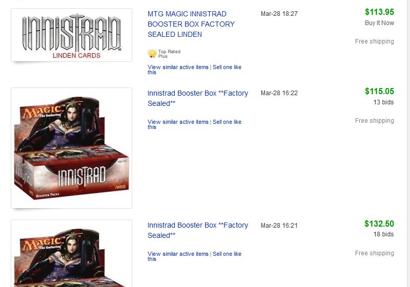 By now, everyone probably knows I am a fan of sealed product. These are great investments which are sure to preserve capital while providing plenty of low-risk growth opportunity. It only takes two years or so for one of these investments to pay out. Recently, growth has begun even sooner – consider Innistrad booster boxes as a prime example, which currently sell on eBay for nearly $120 shipped.