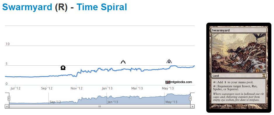 - Casual prices continue to increase as MTG becomes more popular. I opened a lot of Time Spiral packs when the set was new. As a result, I used to own a bunch of Swarmyards, and they all immediately went into my bulk rare box. No one wanted them. Until recently. Sadly, mine are already gone but I’d encourage you to search through your bulk rare box and make sure you pull out all of your Swarmyards if you haven’t already done so!