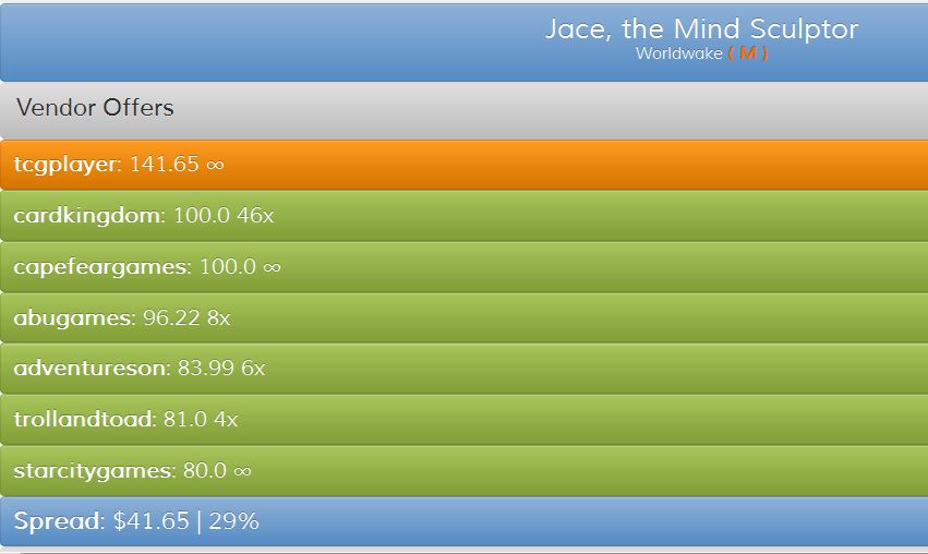 - Want to out your Jace, the Mind Sculptors? May I suggest buylisting them to Card Kingdom or Cape Fear Games, both of which are still paying $100 according to mtg.gg? Honestly I don’t see any vendor offering a higher price in the near term, so it may not be a bad idea. Selling these to free up cash for new investments could yield you better returns while locking in some nice profits.