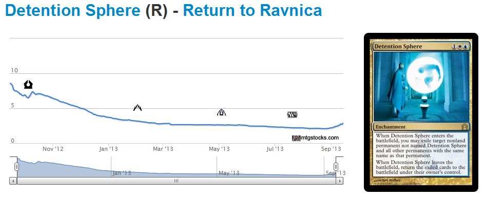 Letās take Detention Sphere as an example. Iāve been getting a little bit of heat from a few members of the QS community for already pulling the trigger to sell a couple play sets. The general consensus is that this card is going higher in priceā-I donāt necessarily disagree, although I donāt think the āenchantment-themedā Theros is nearly as synergistic with Detention Sphere as many had hoped.